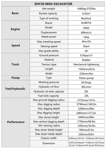 Looking for a powerful, compact 2-ton mini excavator in Canada? The 2026 Huayee SHY20 Mini Excavator, available in Maple Ridge, British Columbia, offers excellent digging performance, smooth hydraulics, and proven reliability. Powered by a genuine Kubota D902 diesel engine, the SHY20 is ideal for contractors, landscapers, farmers, acreage owners, and rental fleets across BC, ALBERTA, SASKATCHEWAN, MANITOBA, ONTARIO, QUEBEC, NOVA SCOTIA and all parts of Canada.